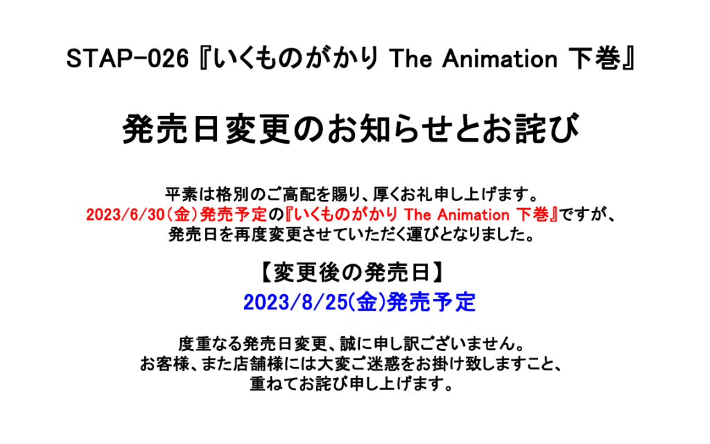 Breaking news! The long awaited second episode of Ikumonogakari The Animation will be delayed again.
